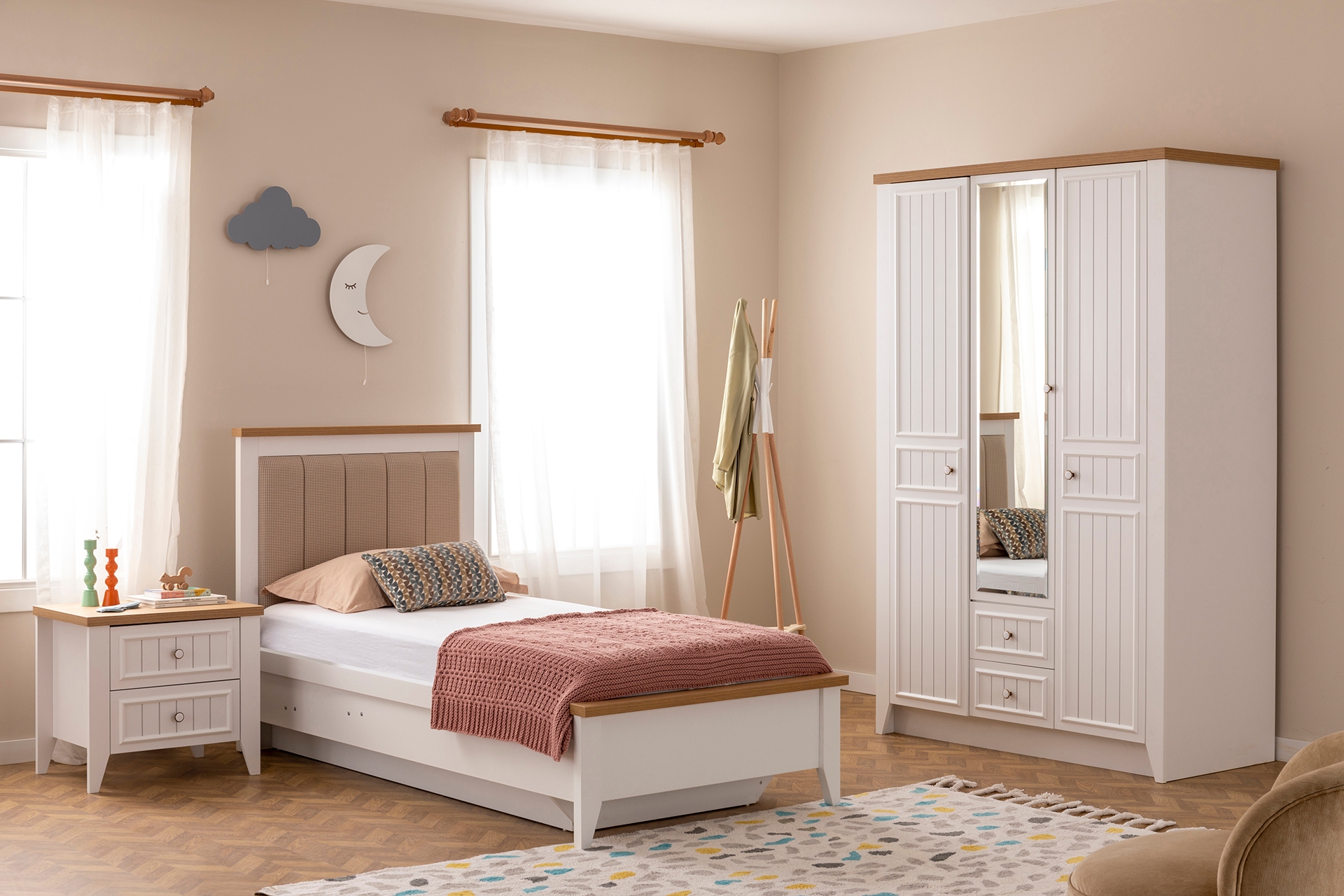 LUNA NOX GENÇ ODASI TAKIMI, BEYAZ GARDIROP, 3 KAPAKLI
