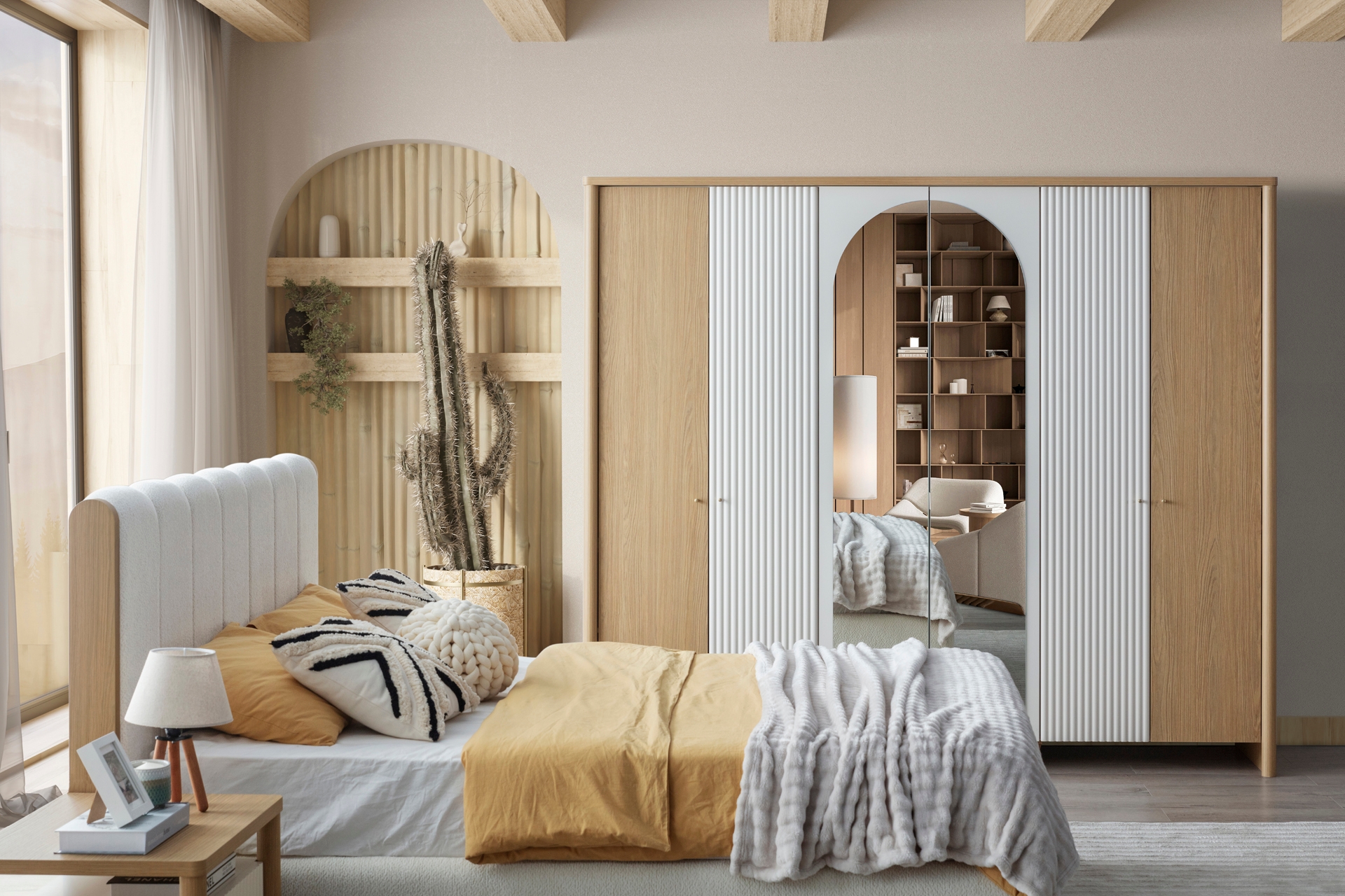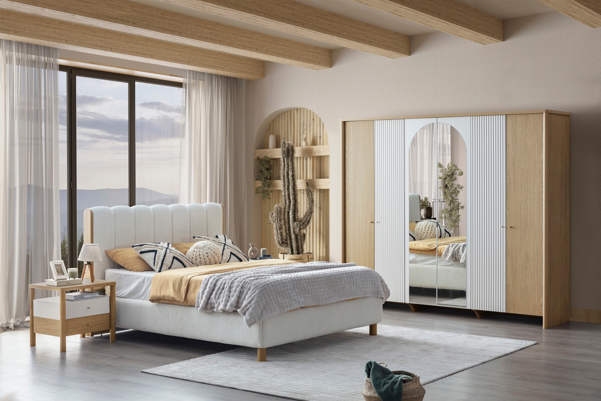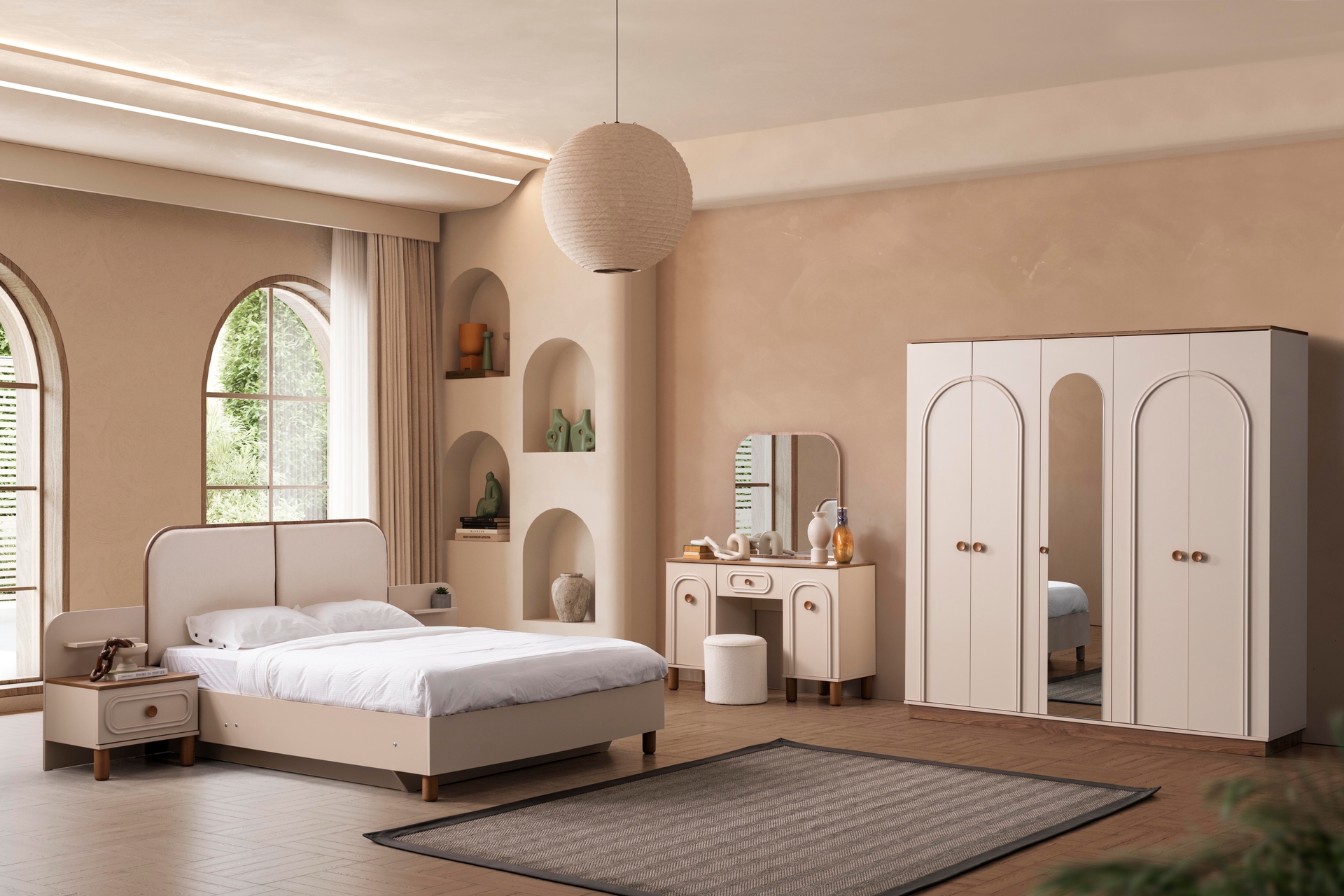 SOLİNA YATAK ODASI TAKIMI, BEJ, 6 KAPAKLI