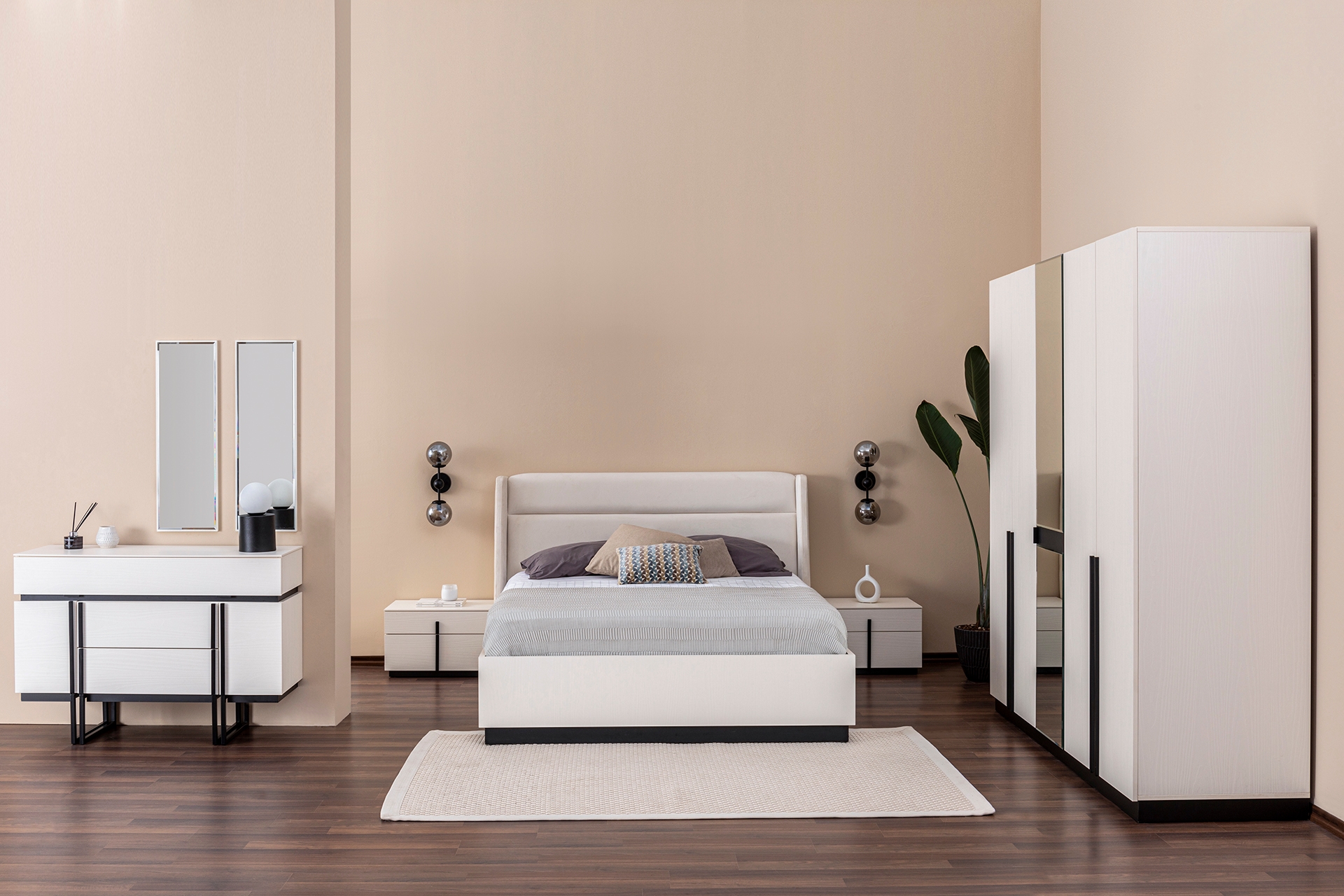 LUNA NOX, PANDİA YATAK ODASI TAKIMI, BEYAZ, 4 KAPAKLI