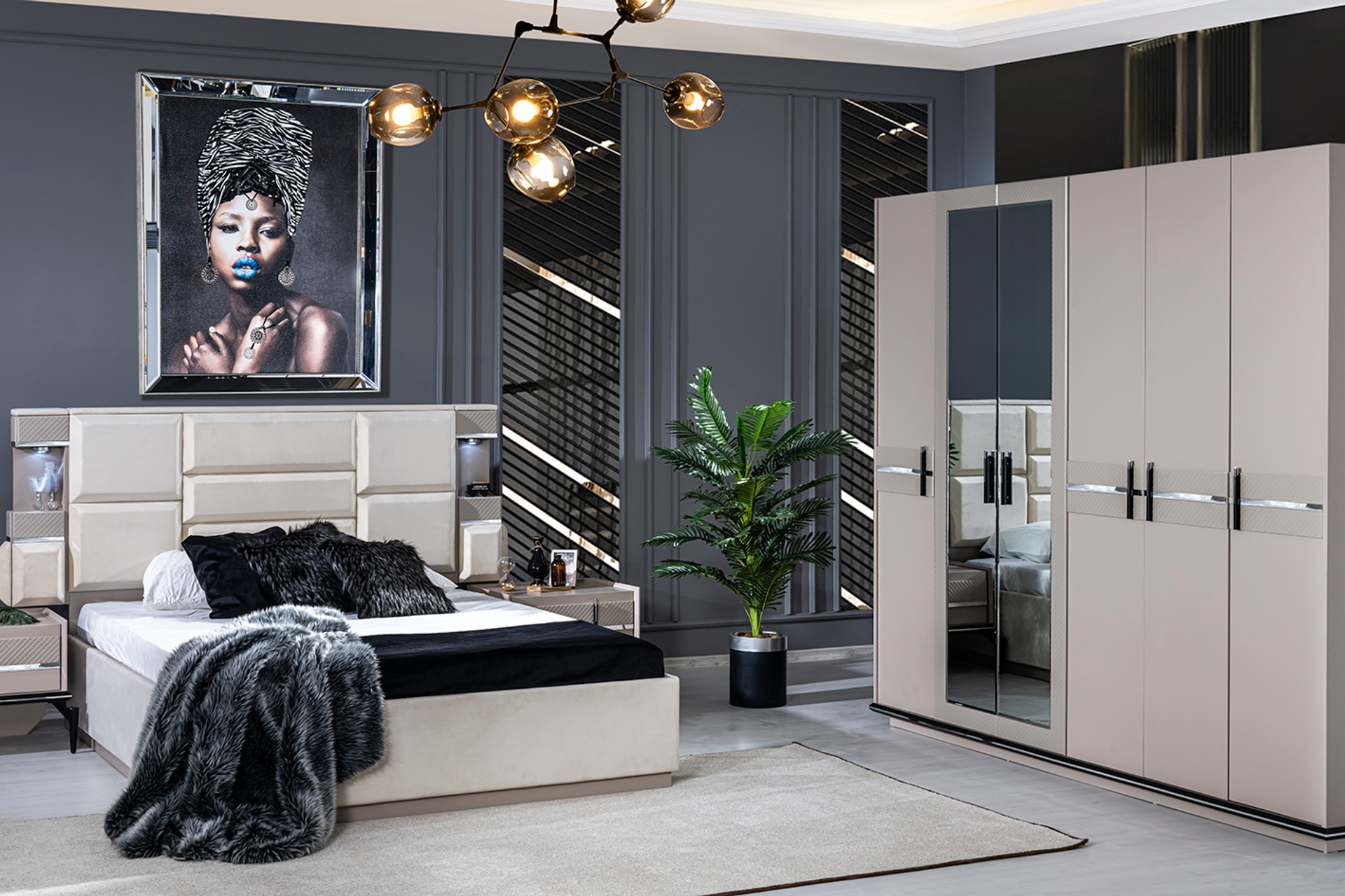 MONARCH YATAK ODASI TAKIMI, AYNALI, 6 KAPAKLI