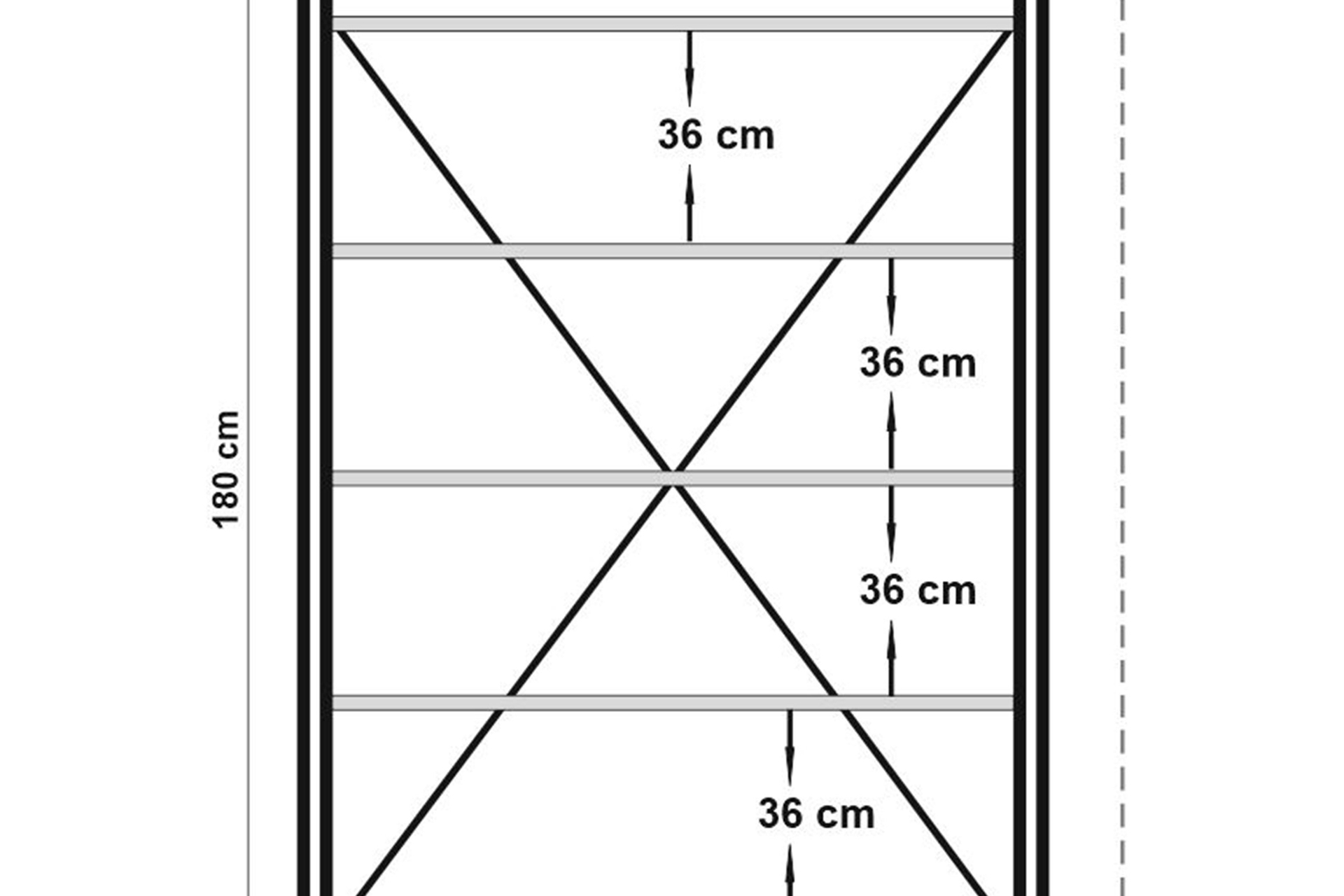 Cosmo Fix Kitaplık: 130 cm genişlik, 35 cm derinlik, 180 cm yükseklik (5 raflı).