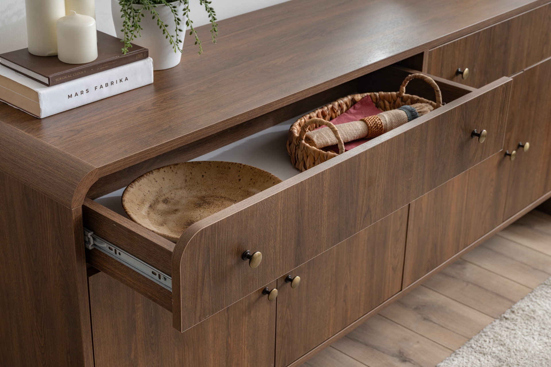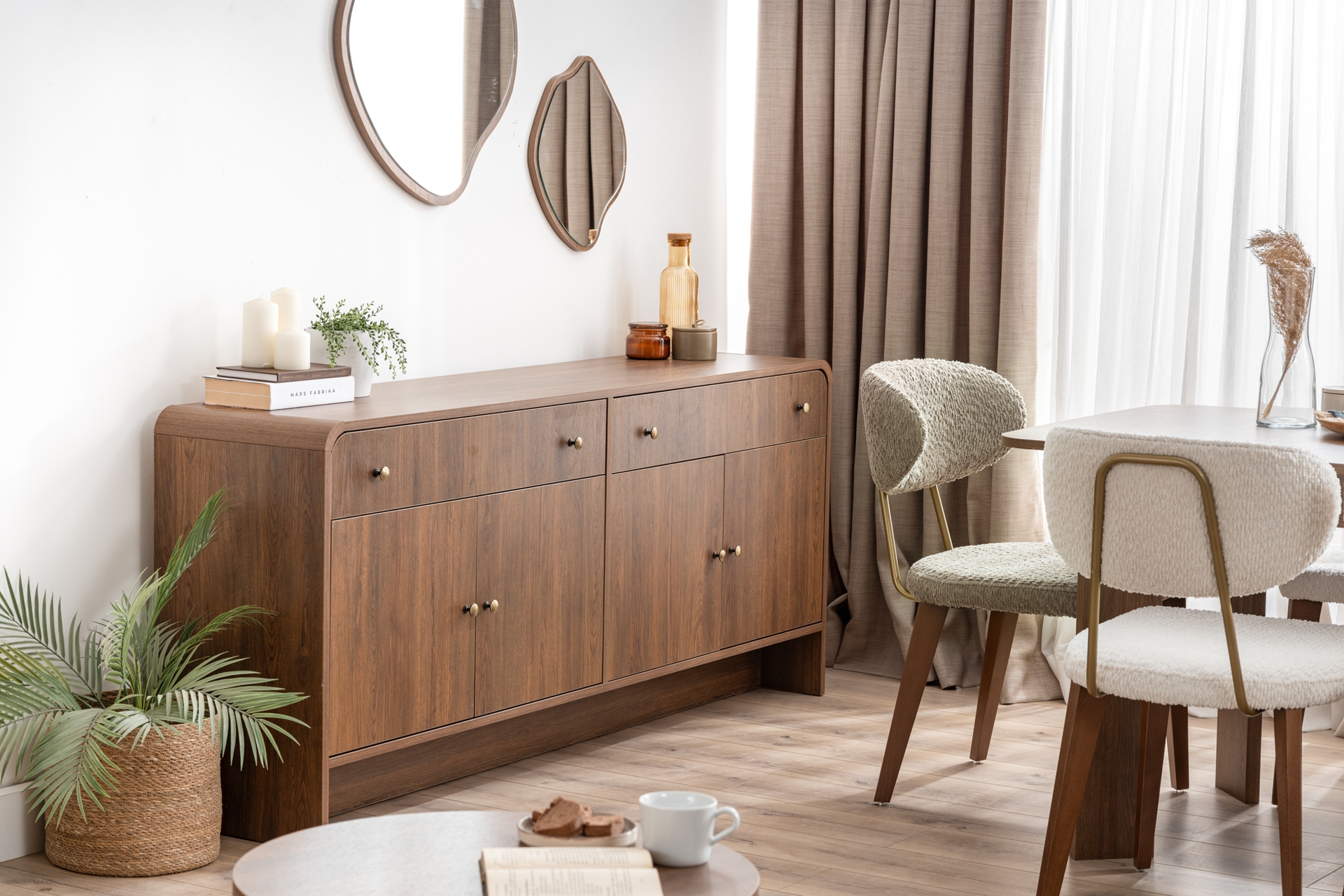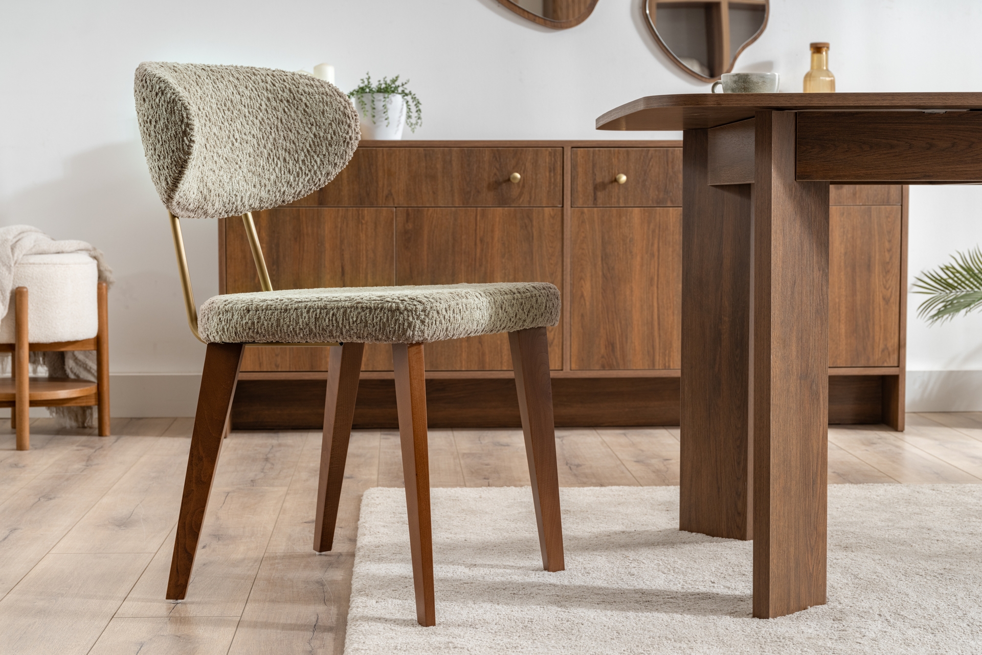 Girona Yemek Odası Takımı, modern ve klasik unsurları harmanlayan, oval köşe detaylarıyla öne çıkan şık bir settir.