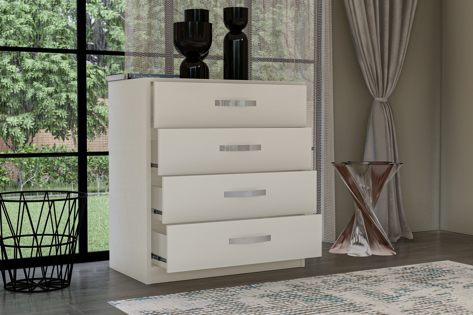 Mekanizma: Çekmecelerde yerli üretim dayanıklı ray sistemleri kullanılmıştır.